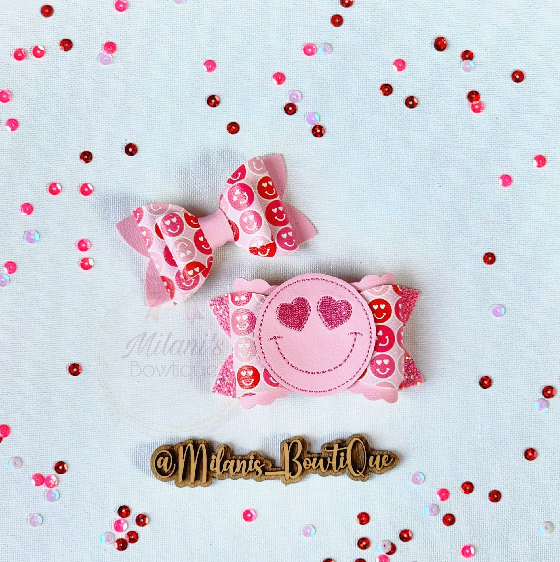 OOAK Heart Eyes Smiley bow measures 3.5"
